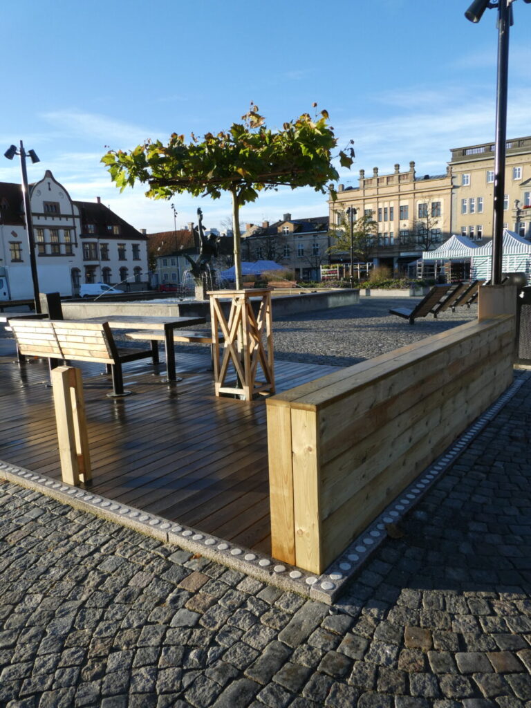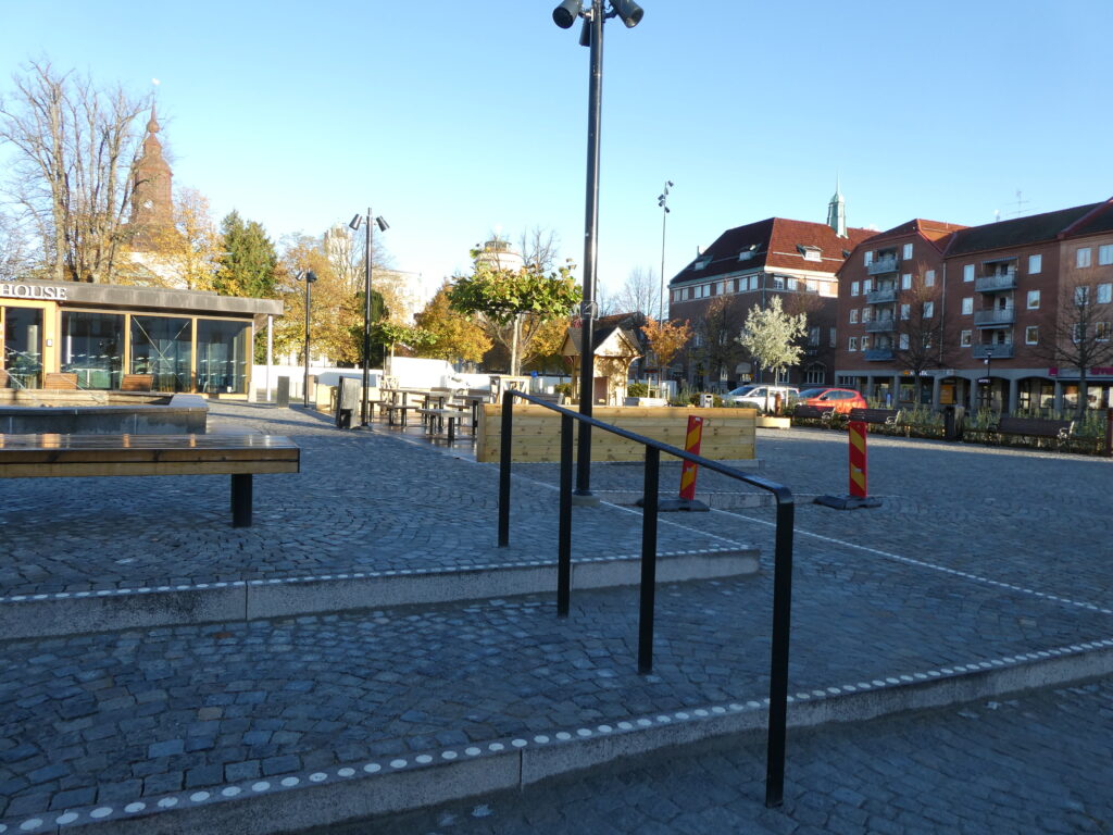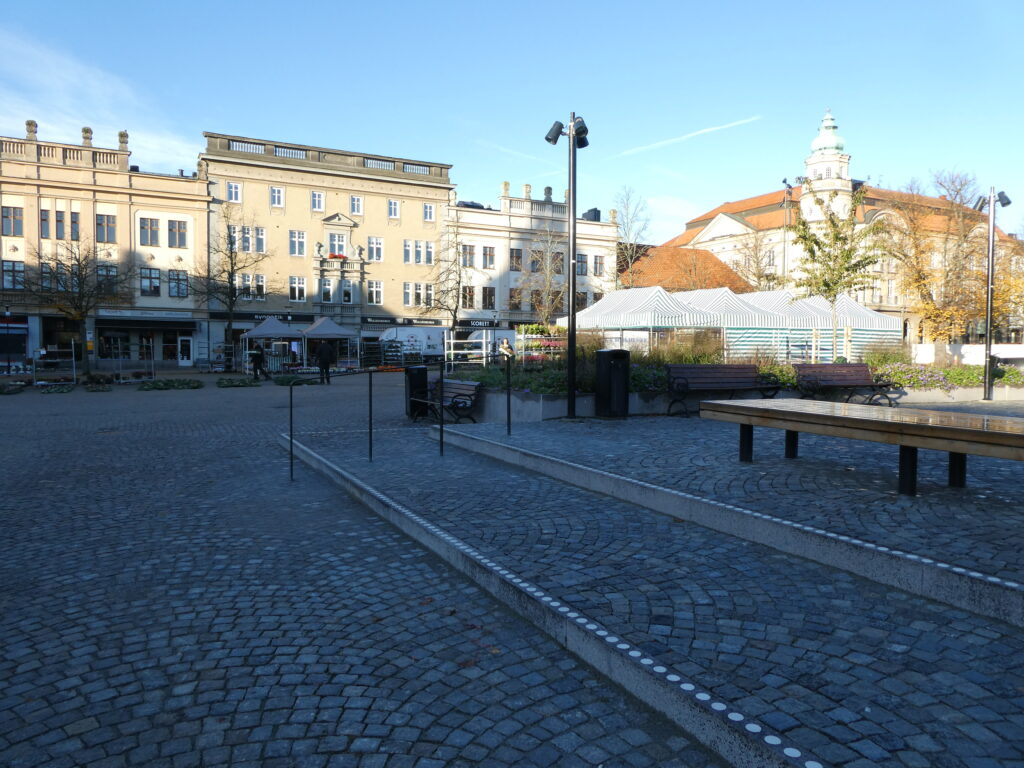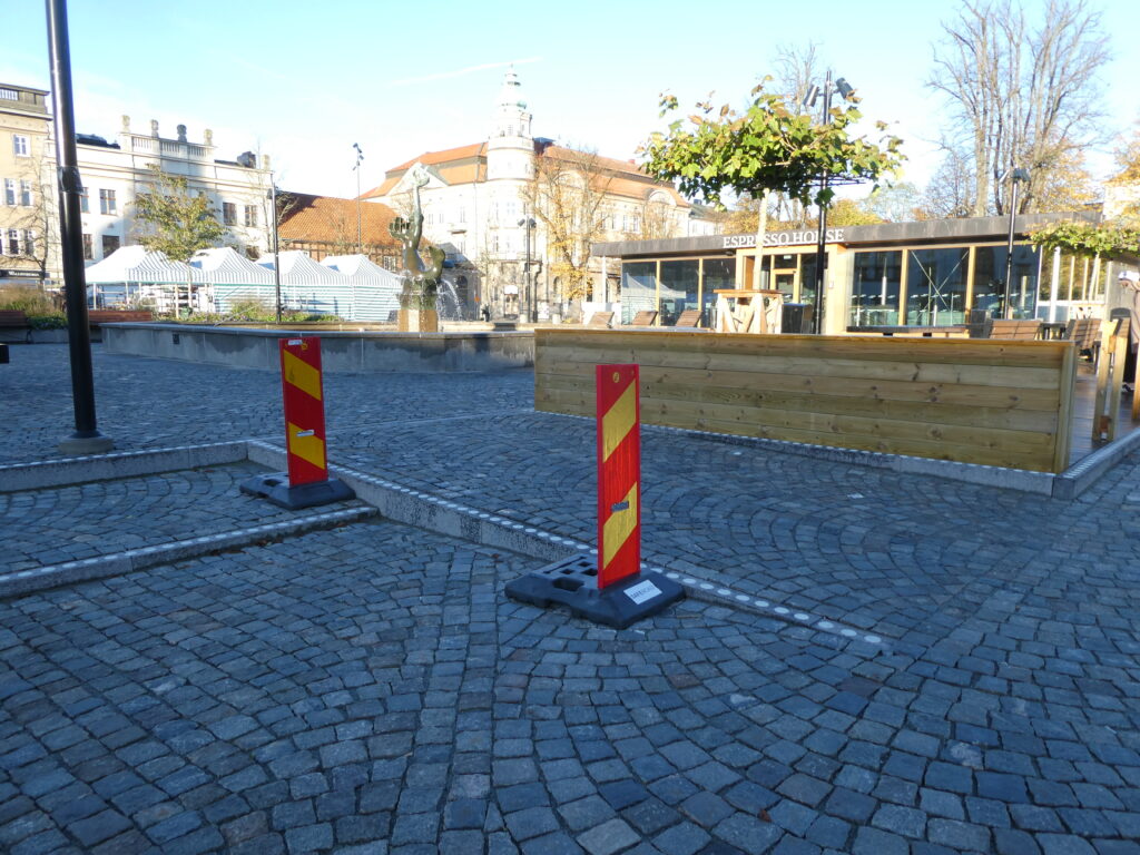 Ett lågt plamk har byggts – nu måste alla se vilka förändringar som gkorts på torget i Karlshamn.