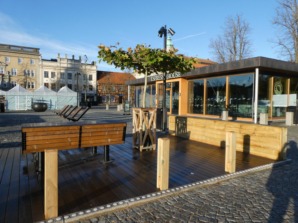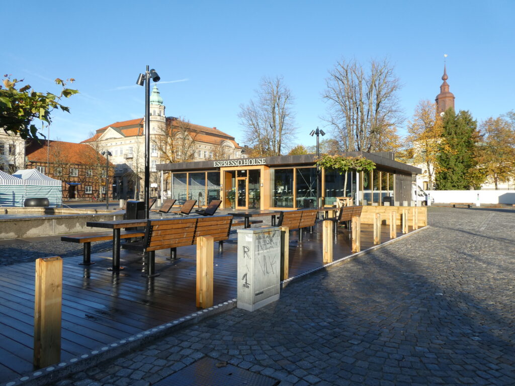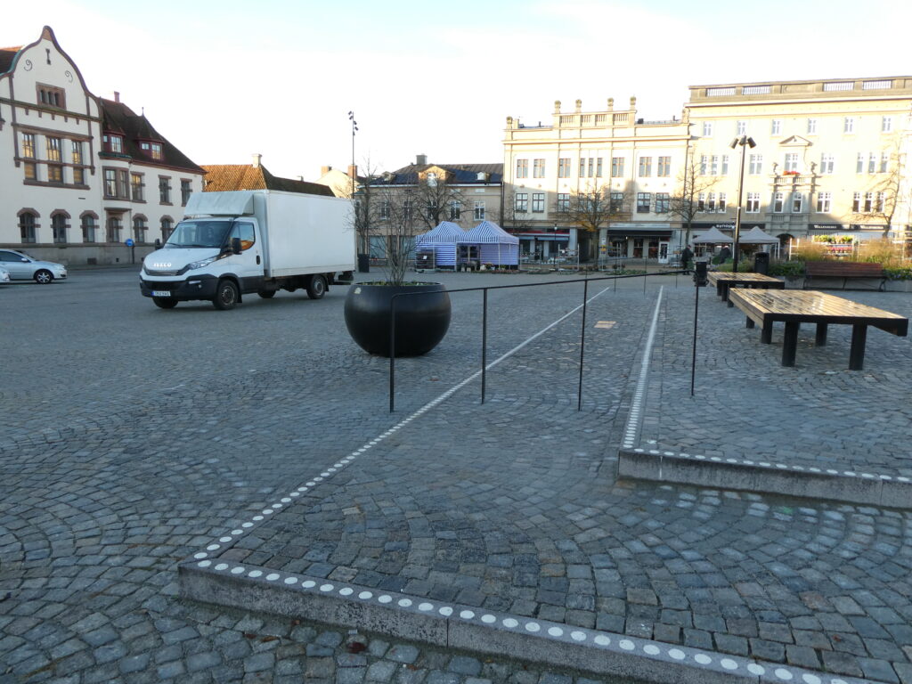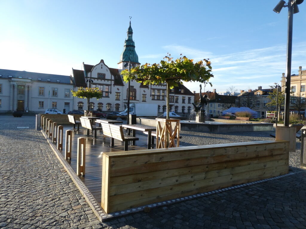 Ett lågt plamk har byggts – nu måste alla se vilka förändringar som gkorts på torget i Karlshamn.