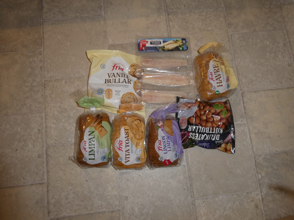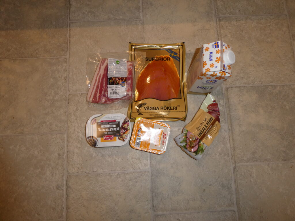 Lunchmat, pålägg och mjölk till havregrynsgröten, som jag äter varje morgon.