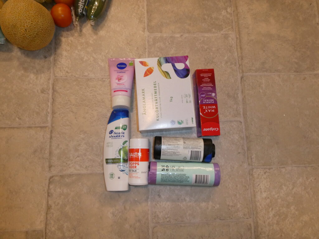 Några hygienartiklar är ett måste – man kan få hem det mesta med matkassarna.