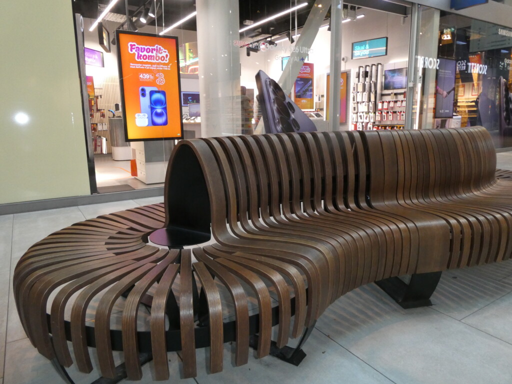 Jag blev förtjust i denna vackra sittmöbel Här kan man vila sina trötta ben efter inköpsrundan.