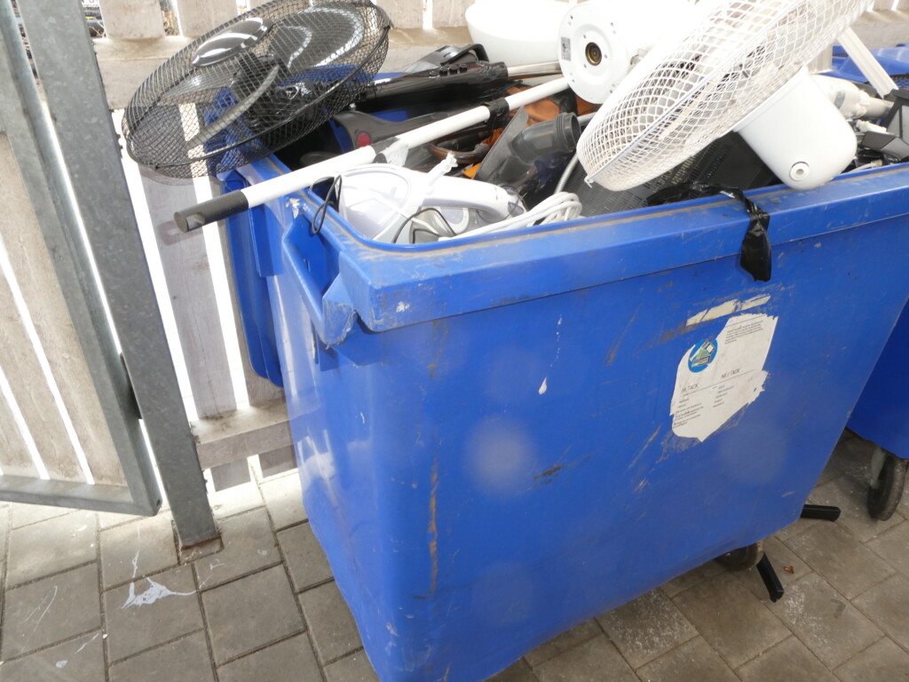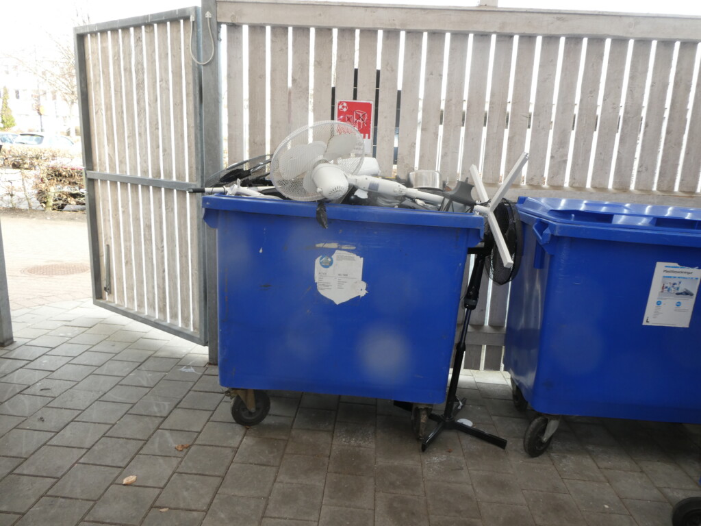 Sopbehållaren för elartiklar är alltid fullastad varje vecka.