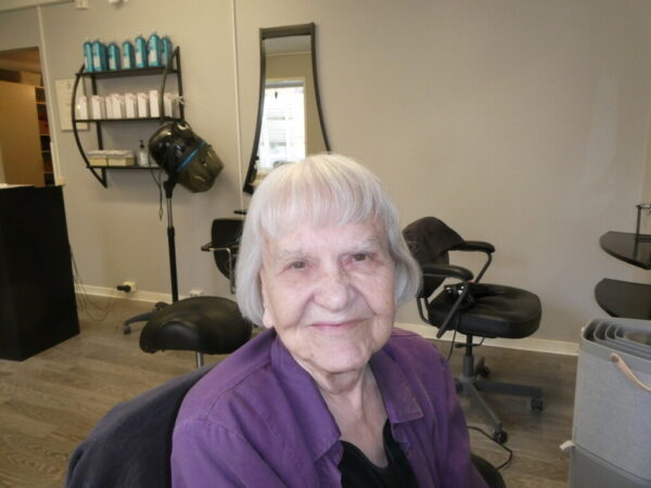 Så lyxigt att gå till den trevliga frisören ”inomhus” utan att behöva ta på mig ytterkläder, trots att det skiljer flera hus mellan oss. 7 minuters promenad!