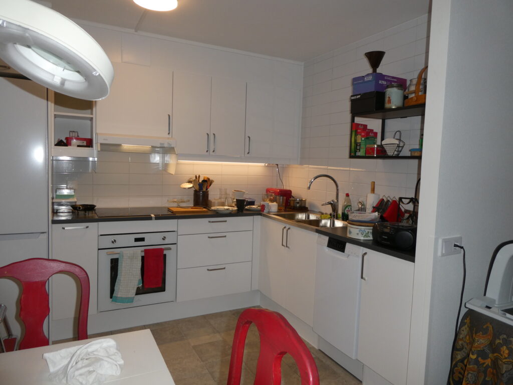 Tre av mina ”nära o kära” arbetar i Malmö innerstad. Min yngsta dotter tog ledigt för att möta mig i min nya lägenhet, som jag själv har fixat. Hon tycker min helt nyrenoverade lägenhet är fin och mycket fräsch.