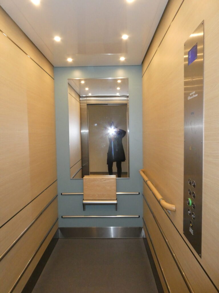 Fjärde våningen är min nya lägenhet belägen. Skönt då med en modern hiss. I Karlshamn bodde jag på tredje våningen och utan hiss. Med hiss känns bra för ”en gamling” som jag.
