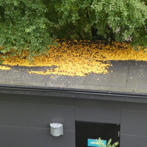 Vad är det för gult som ligger på vårt svarta barnvagnshus?